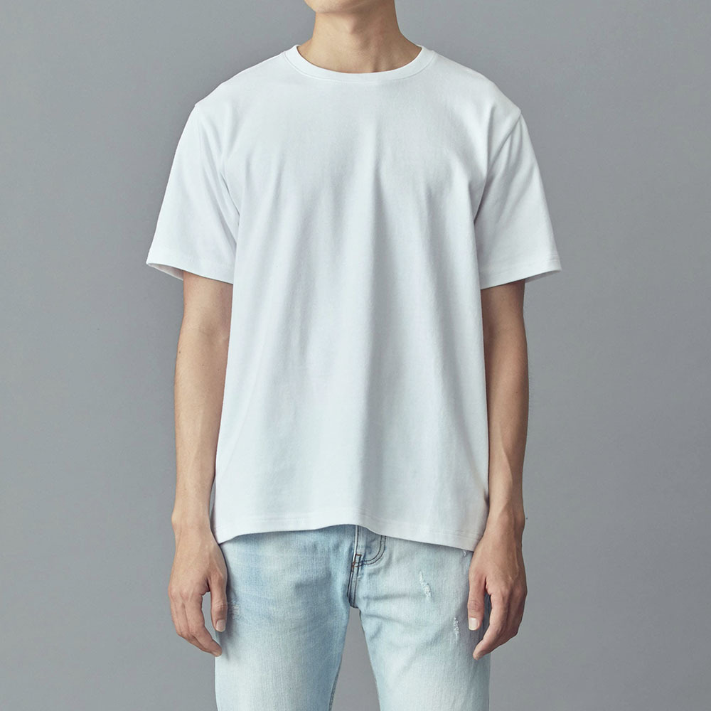上身稍厚的梯形男生,跟倒三角身形的朋友一樣,在磅數、款式的選擇比較自由,而穿著較合身的尺寸則可以讓整體視覺更為俐落。
